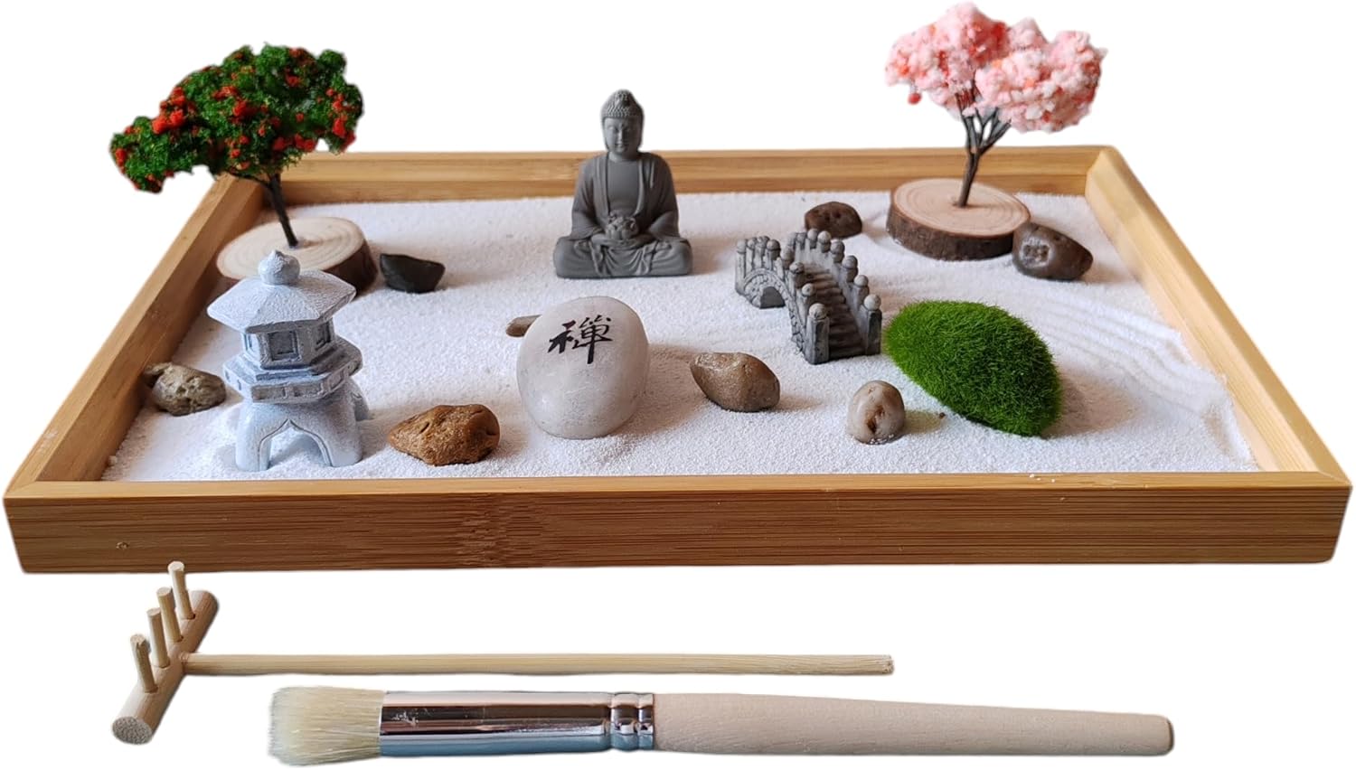 Find your focus and cultivate calm with a landscape of your own making. In this section, explore our collection of ready-made Zen garden kits and delicate tools designed for the desktop. Gather inspiration from the stories behind these ancient gardens, and let our step-by-step advice guide you in crafting a personal haven of sand, stone, and serenity—right at your fingertips.